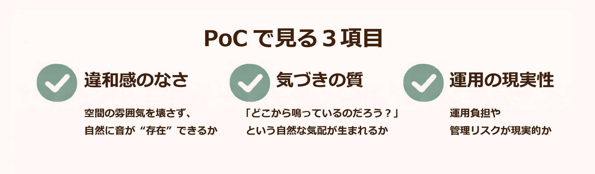 ・違和感のなさ:空間の雰囲気を壊さず、自然に音が“存在”できるか