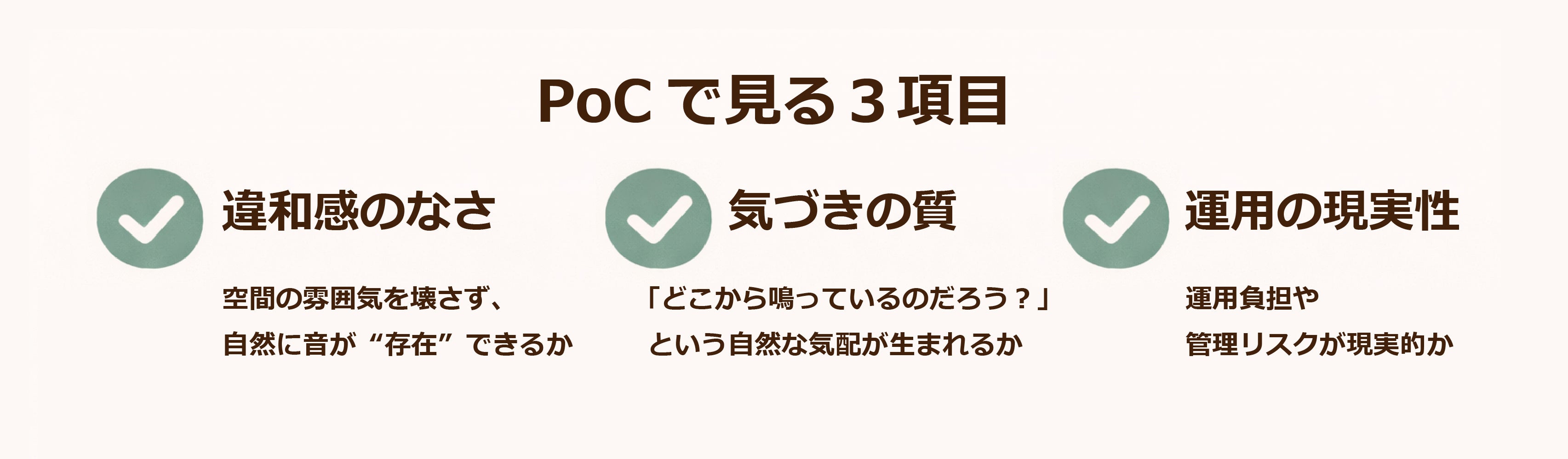 ・違和感のなさ:空間の雰囲気を壊さず、自然に音が“存在”できるか