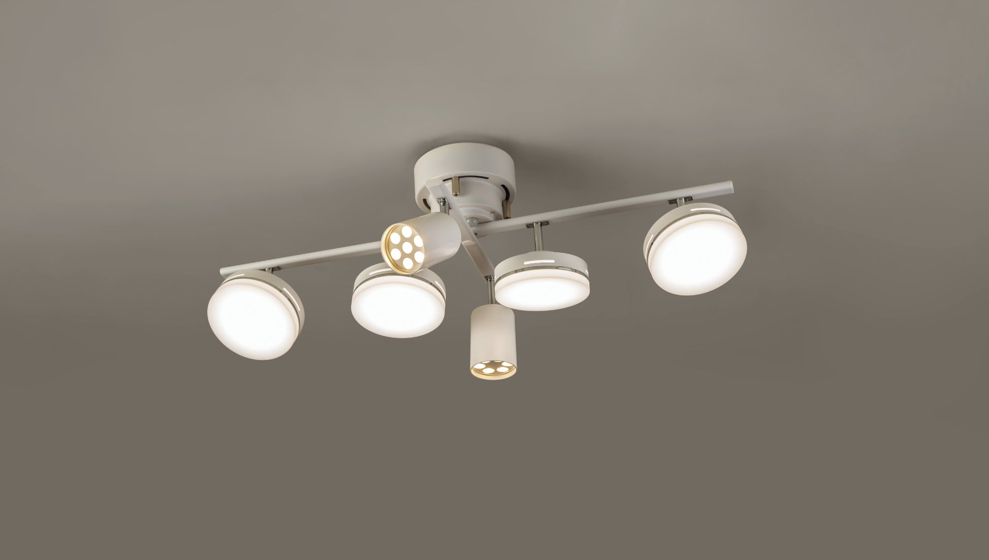 部屋全体を均一に照らすシーリングライトに加え、自由に向きを調節できるスポットライトを搭載。従来は別々だった2つの照明を一体化し、シンプルな配線・省スペース化も実現。1台で多目的な照明演出が可能です。