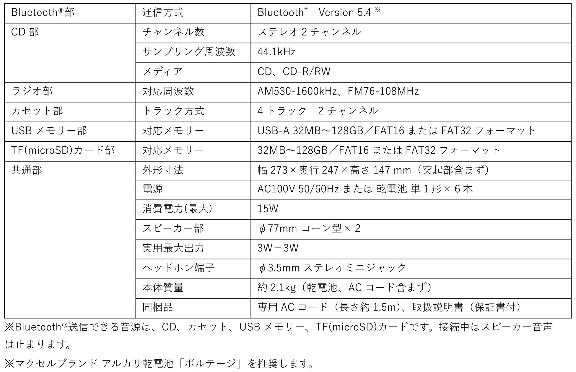 Bluetooth®対応CDラジオ カセットレコーダー |