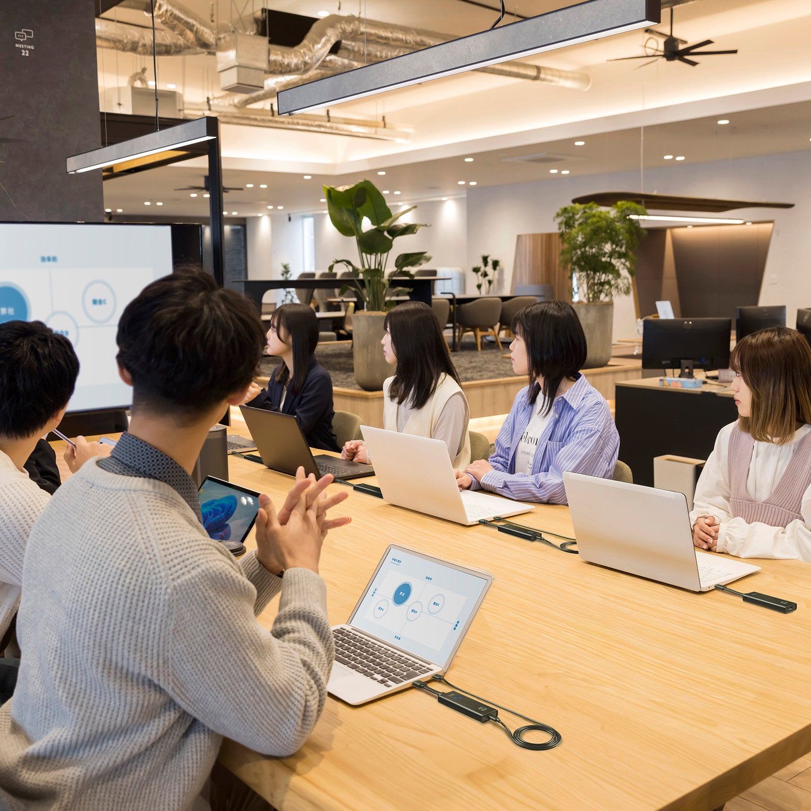 DisplayPort Alternate Mode対応のType-Cポートから映像・音声信号をワイヤレスで送信し、HDMI出力で大型テレビなどに出力することができます。Type-CポートからのUSB給電で動作するためケーブル1本で接続でき、ノートパソコンやタブレットなどを使用した会議システム・プレゼンテーション環境に最適です。