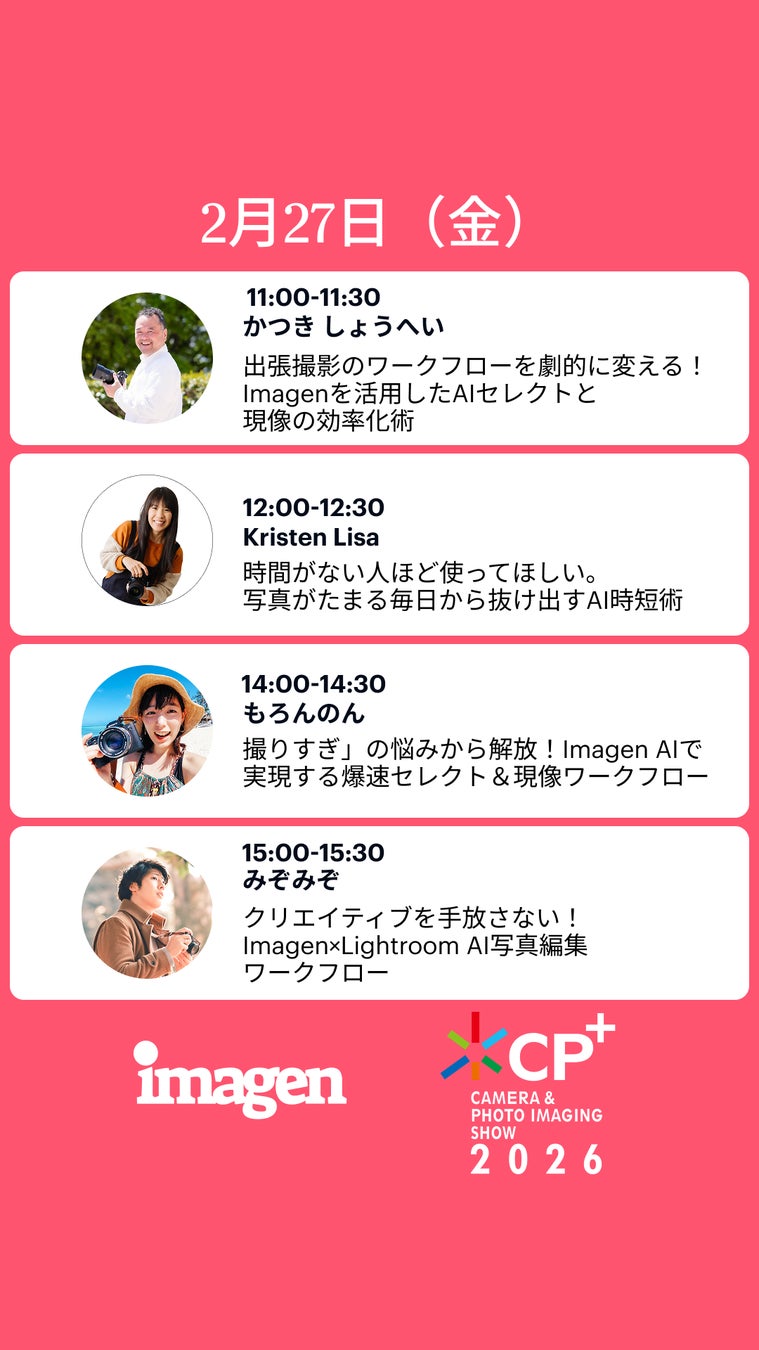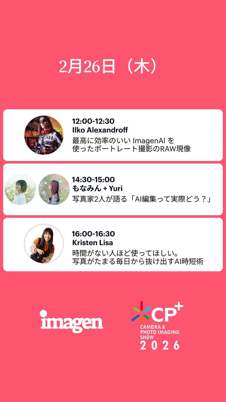 これらの新機能は、CP+会場内Imagenブース(ブース番号:40)にて体験いただけます。