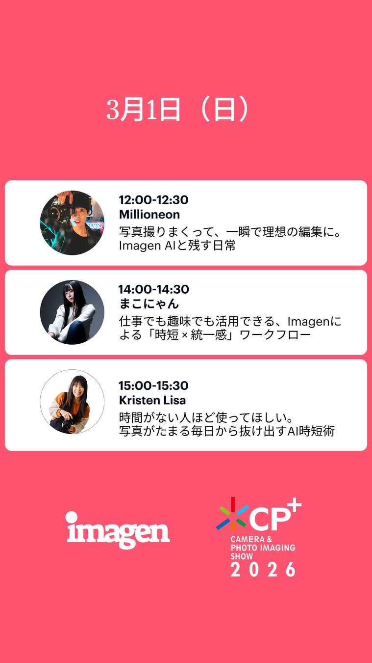 をご用意。会期中はImagenチームが常駐し、導入方法やワークフロー設計について直接ご相談いただけます。