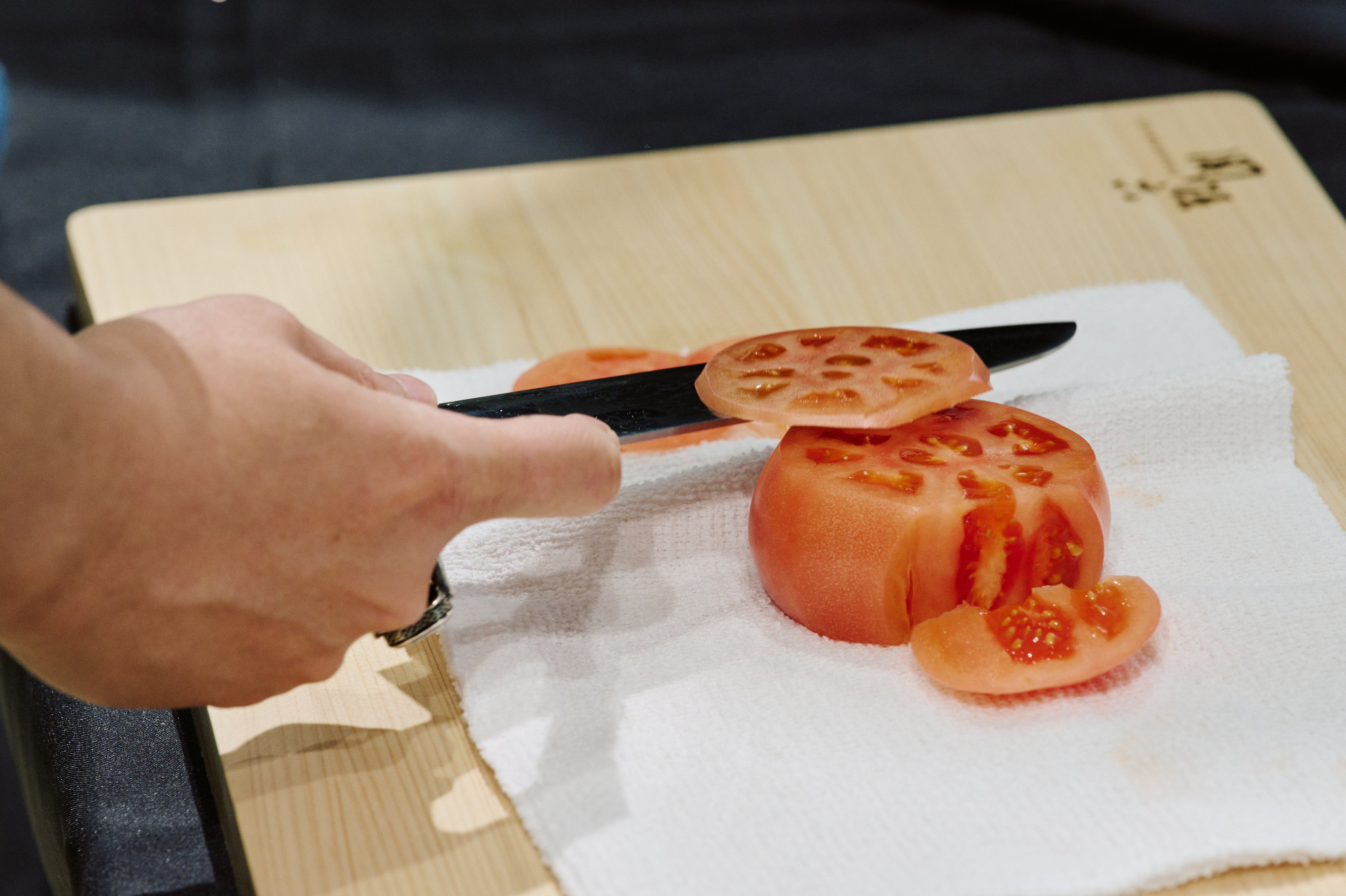 参加者の方に村田氏考案のレシピをご試食していただき、実際に新商品を使用していただき切れ味や利便性をご体感いただきました。また、参加者に包丁を持参いただき貝印包丁マイスターによる「研ぎ直し体験」も実施いたしました。