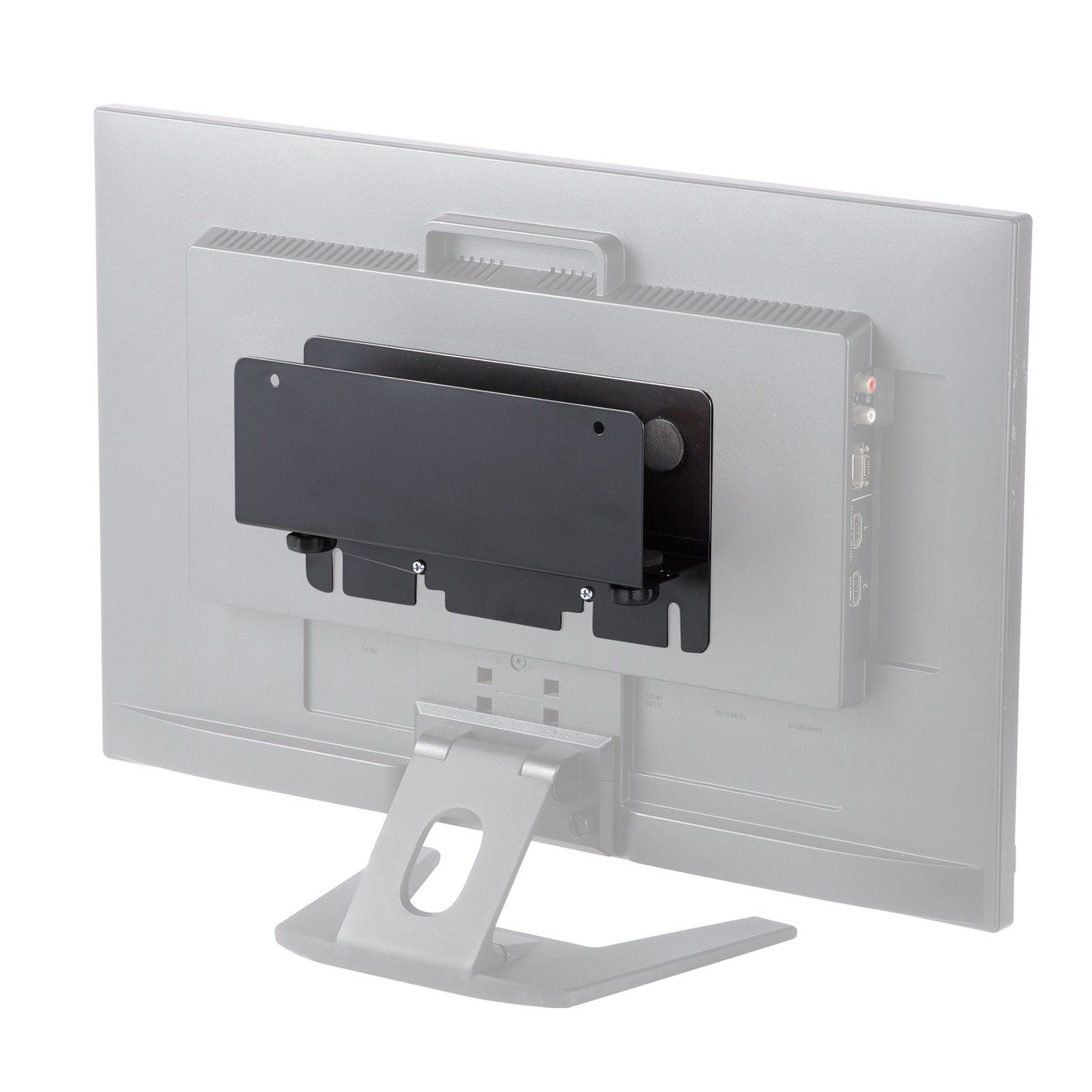 VESA規格のネジ穴を使って、モニター裏に設置できる収納ホルダーです。
