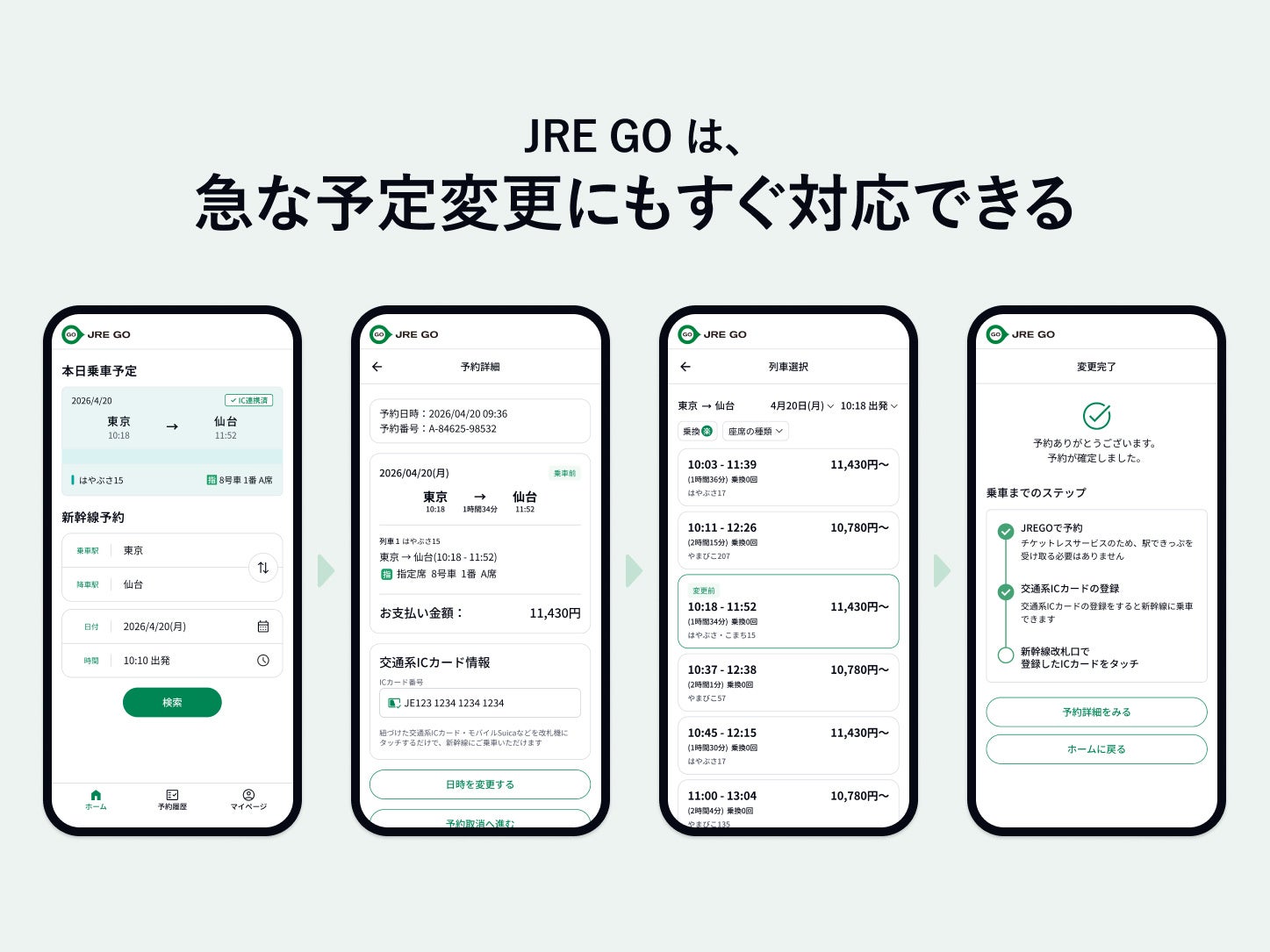 新しい新幹線予約サービスJRE GOでは、最短1分で新幹線を予約できる体験を実現します。