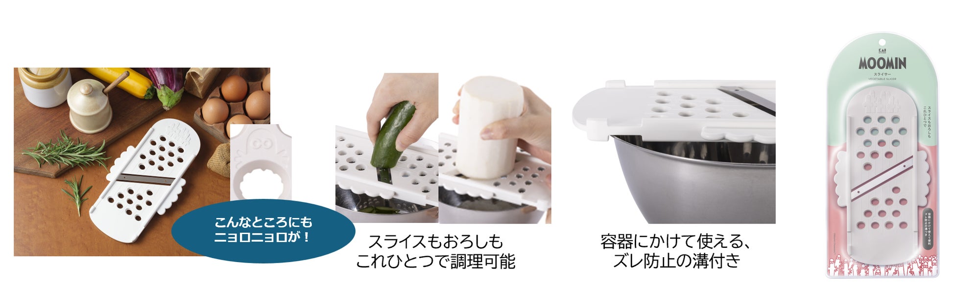 全体をニョロニョロモチーフに見立てたスライサー。裏返すとおろし器としても使用できます。