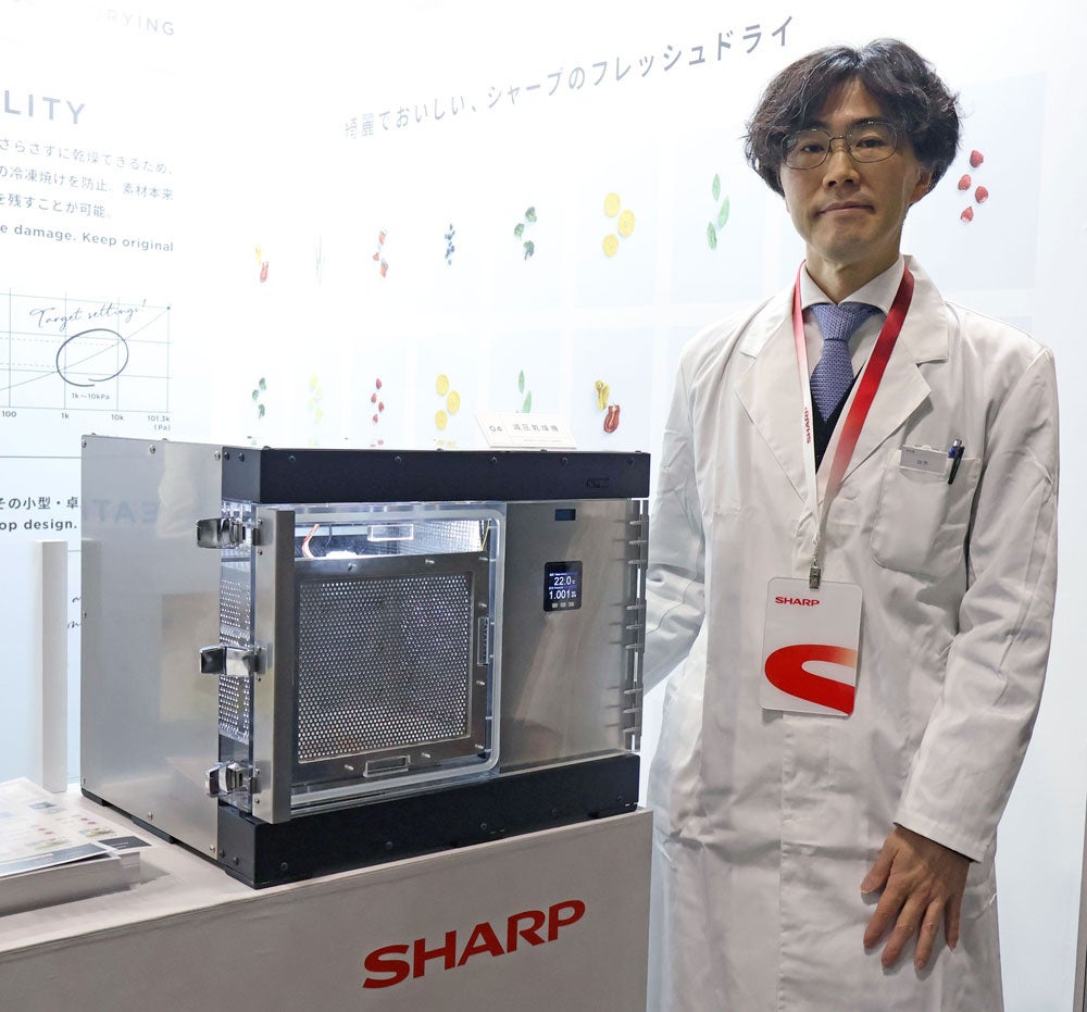 さらに、家庭用電子レンジで培ったマイクロ波制御とウォーターオーブン「ヘルシオ」で培った庫内の気密・熱・蒸気コントロールの知見を活かし、家電サイズコンセプトモデルを開発。試作・小ロット検証や店舗・研究用途から検討しやすい設計を目指しています。将来は食品に限らず、医療・化粧品などの分野でも活用の可能性を探っています。