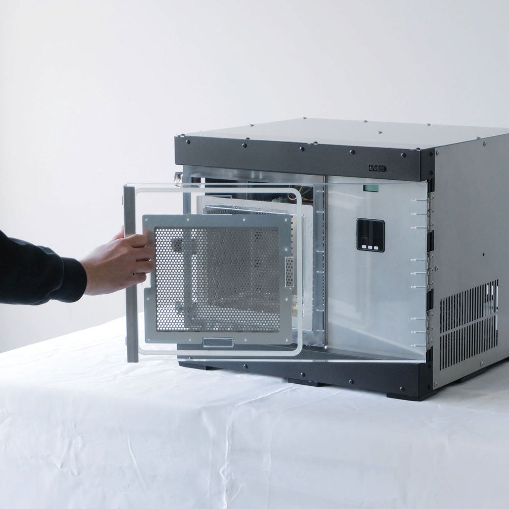 一方、実装のしやすさも重要です。コンセプトモデルはオーブンレンジ相当のサイズで100V電源に対応。特別な工事を不要にし、試作〜小ロットの検証を素早く回せる設計を目指しました。店舗内調理や研究用途でも扱いやすく、仮説検証のスピードを高めます。