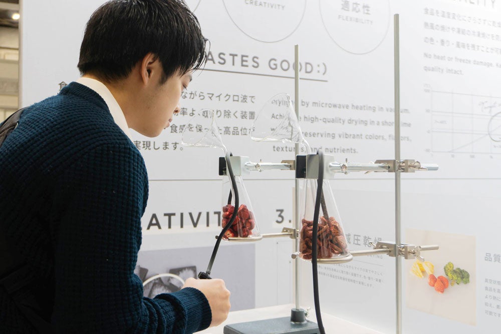 2026年1月28日、29日に開催されたFOOD STYLE JAPAN 2026 <関西>(インテックス大阪)に、「高品位減圧乾燥技術」のコンセプトモデルを展示しました。ブースでは、減圧乾燥と熱風乾燥の比較サンプル、いちごの香りの比較体験、実験データのパネル展示を通じて、低温で内部から真空状態で乾かすという発想と効果をご紹介。小ロットの試作検証から行えるサイズ感であることも併せてお伝えしました。
