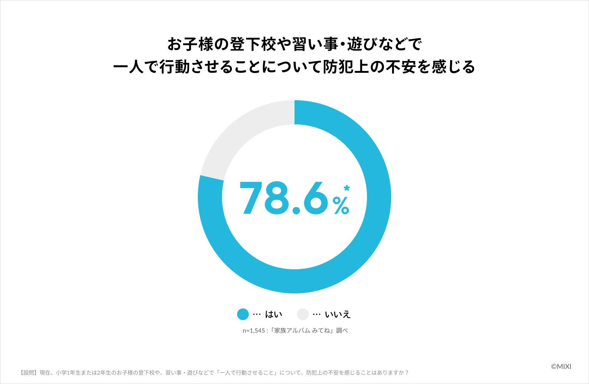 株式会社MIXI(東京都渋谷区、代表取締役社長 上級執行役員 CEO:木村 弘毅)は、この春に小学校へ入学する新一年生の保護者の防犯グッズ選びを支援するため、GPS端末や防犯ブザーを実際に利用している小学1〜2年生の保護者1,545名を対象に、利用実態や課題、そして経験者だからこそわかる、本当に必要な機能を明らかにする調査を実施しました。