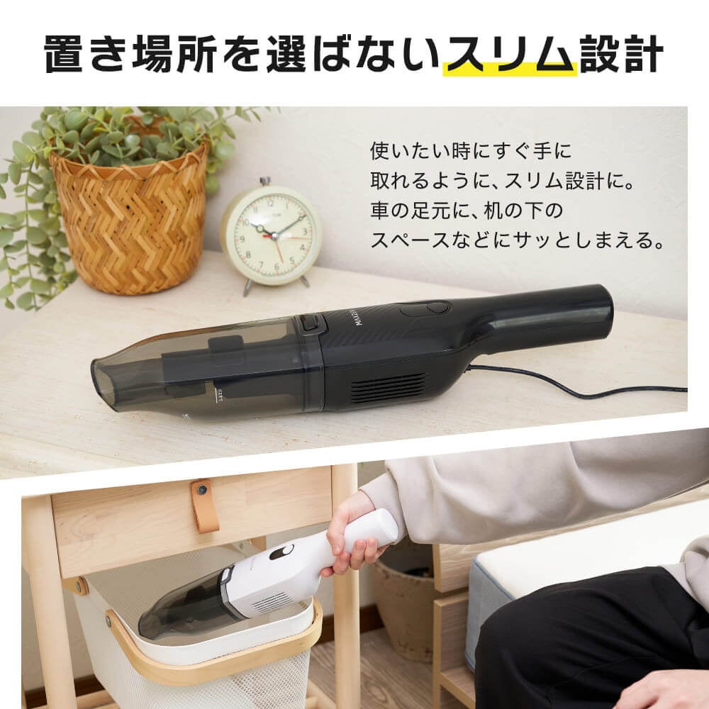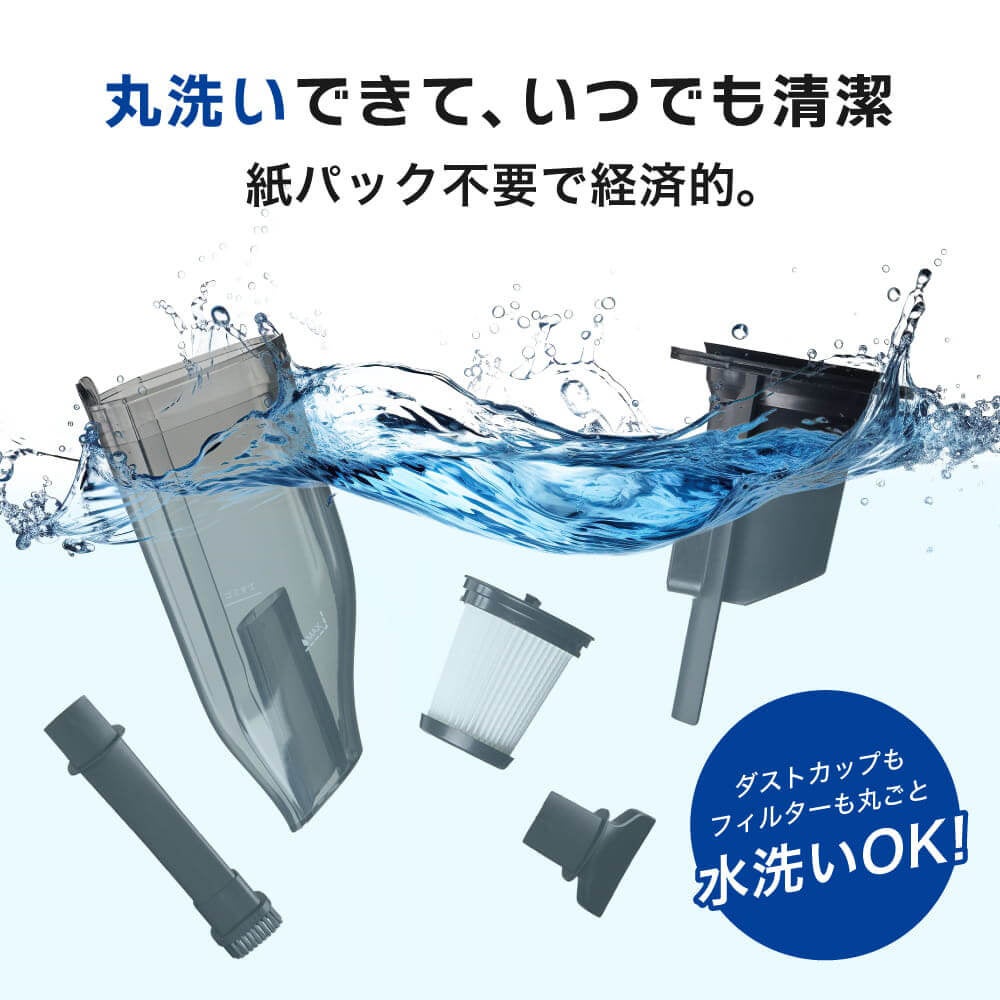 WET&DRYの両方に対応。ダストカップとフィルターは水洗いOKで、いつでも清潔に使えるコードレスタイプのハンディクリーナーを新発売。