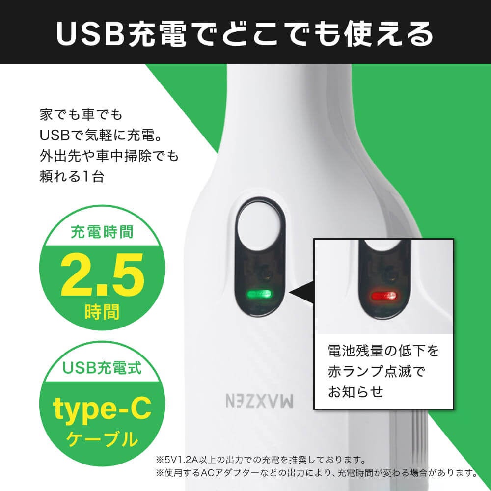 約580gの軽さとUSB充電対応で、家中どこでも手軽に使える。