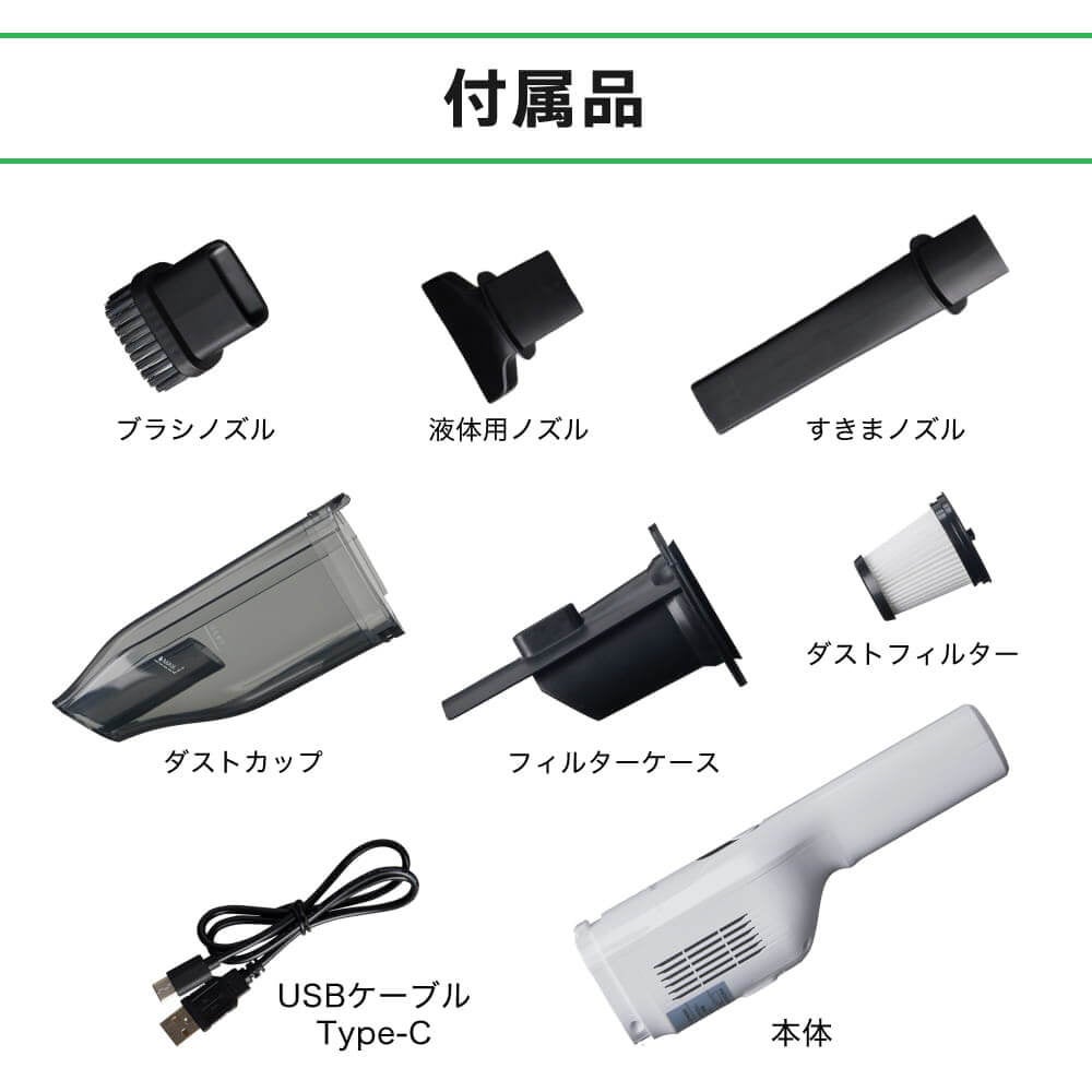 こぼした飲み物からホコリ、すき間汚れまで対応する3種類のノズル
