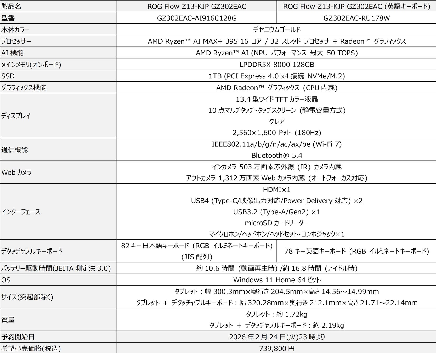 ※今回発表のROG Flow Z13-KJP GZ302EACの詳細スペックはこちらからご確認ください。