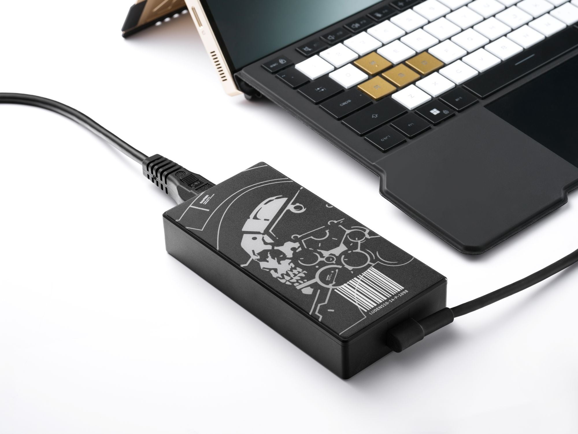 本製品は、ROGゲーミングノートPCで初めてカーボンファイバーを使用し、テクノロジーへの追求と精度を表現しています。「ルーデンスが装備するガジェット」を追求し、アートディレクター新川洋司氏によりデザインされたROG Flow Z13-KJPには、マシンを守る専用ハードケース、力を与えるACアダプター、ソフトウェアを支えるArmoury CrateのUIに至るまで、ルーデンスの物語が余すことなく体現されています。
