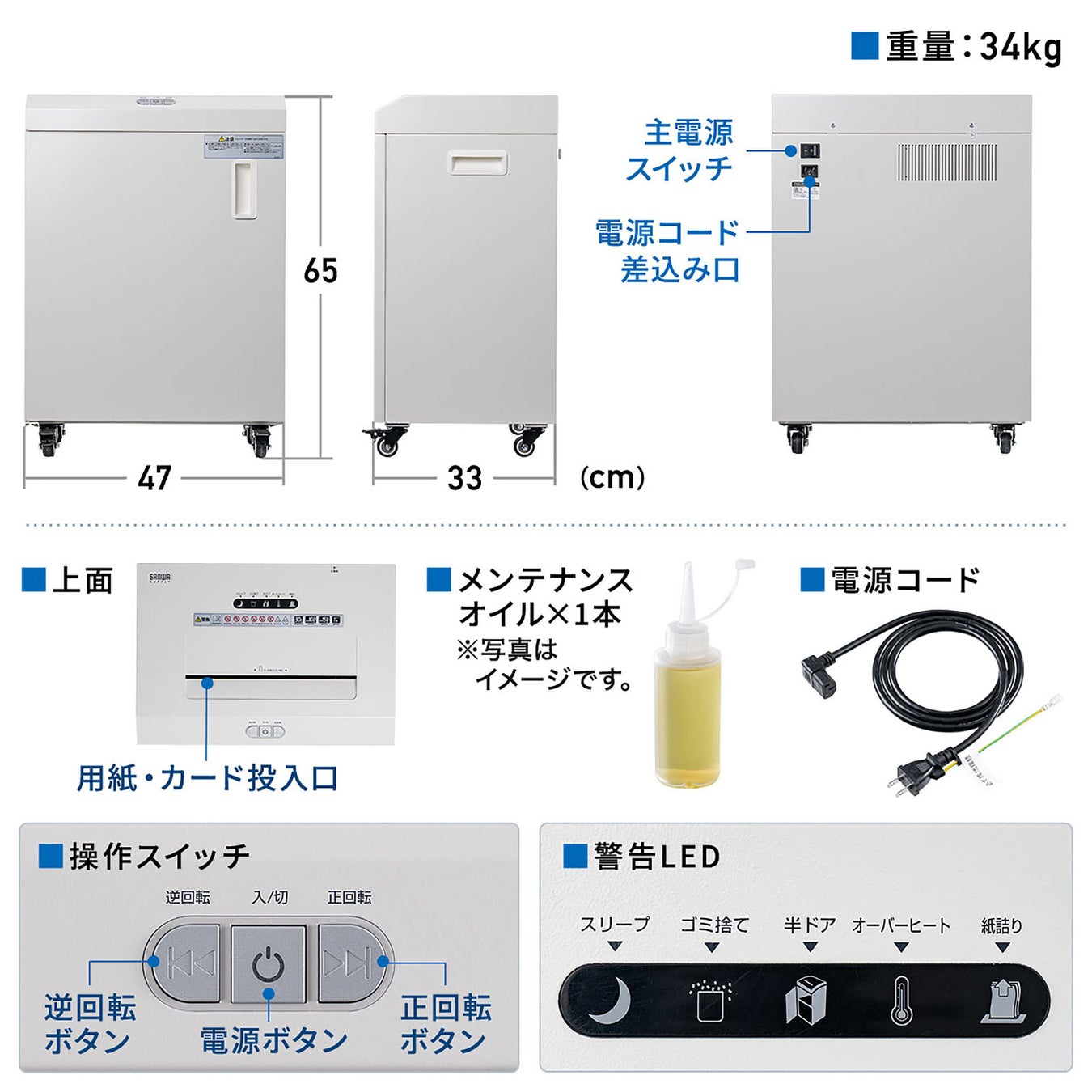 電動シュレッダー 業務用 マイクロカット A3対応 大容量 A4最大15枚同時細断 A3最大10枚同時細断 30分連続細断 カード細断 ホッチキス対応 40L 静音 キャスター付き