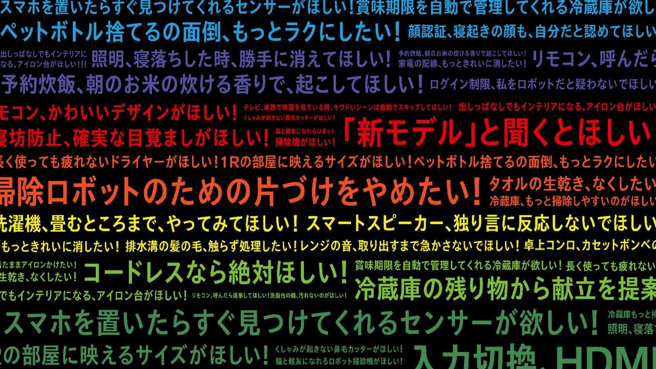 寄せられたアイデアは、「物欲科学サイクル」を通じて、開発を検討してまいります。