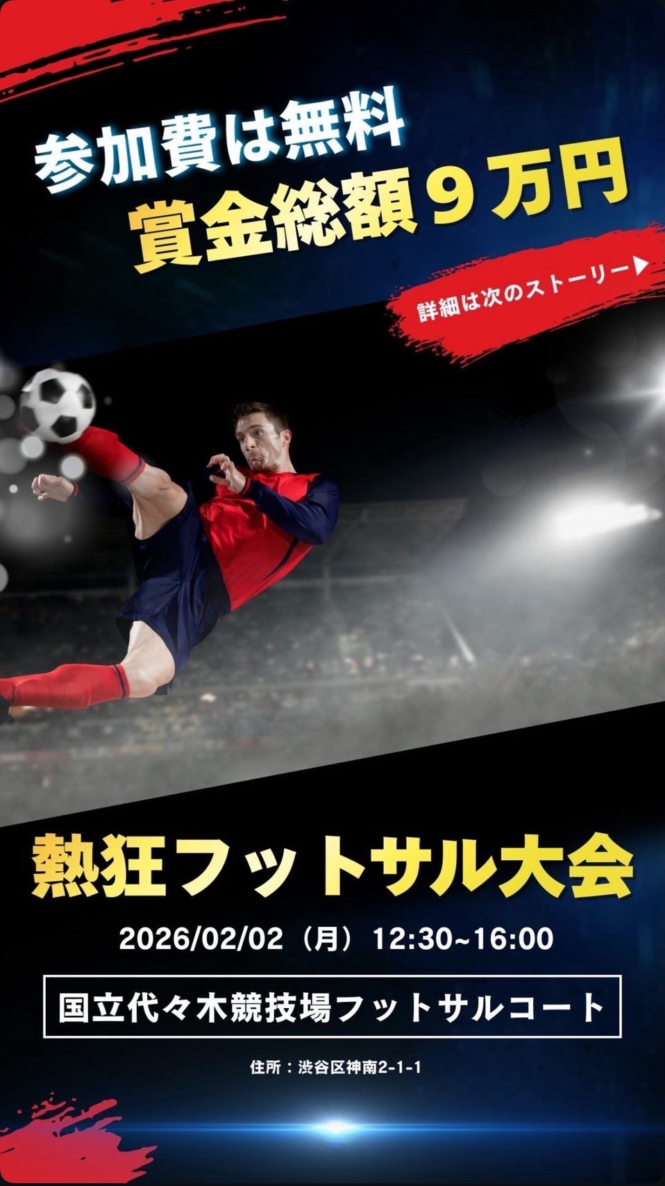 SFG株式会社(本社:東京都新宿区、代表:天野莉玖、以下SFG)は、2026年2月2日(月)に 国立代々木競技場 フットサルコートで開催された「熱狂フットサル大会」に特別協賛いたしました。