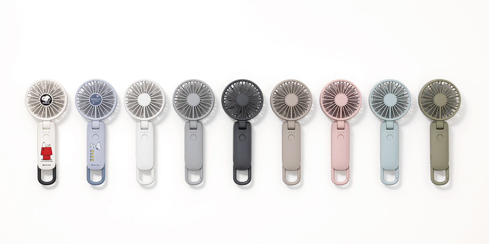 前モデル同様「ミズイロ」「ライトグレー」「ダークグレー」「グリーン」に加え、新色として「ピンク」「グレーベージュ」「ミディアムグレー」の3色を加え、7色展開いたします。また、スヌーピーデザインを採用したPEANUTSモデルを2色展開いたします。