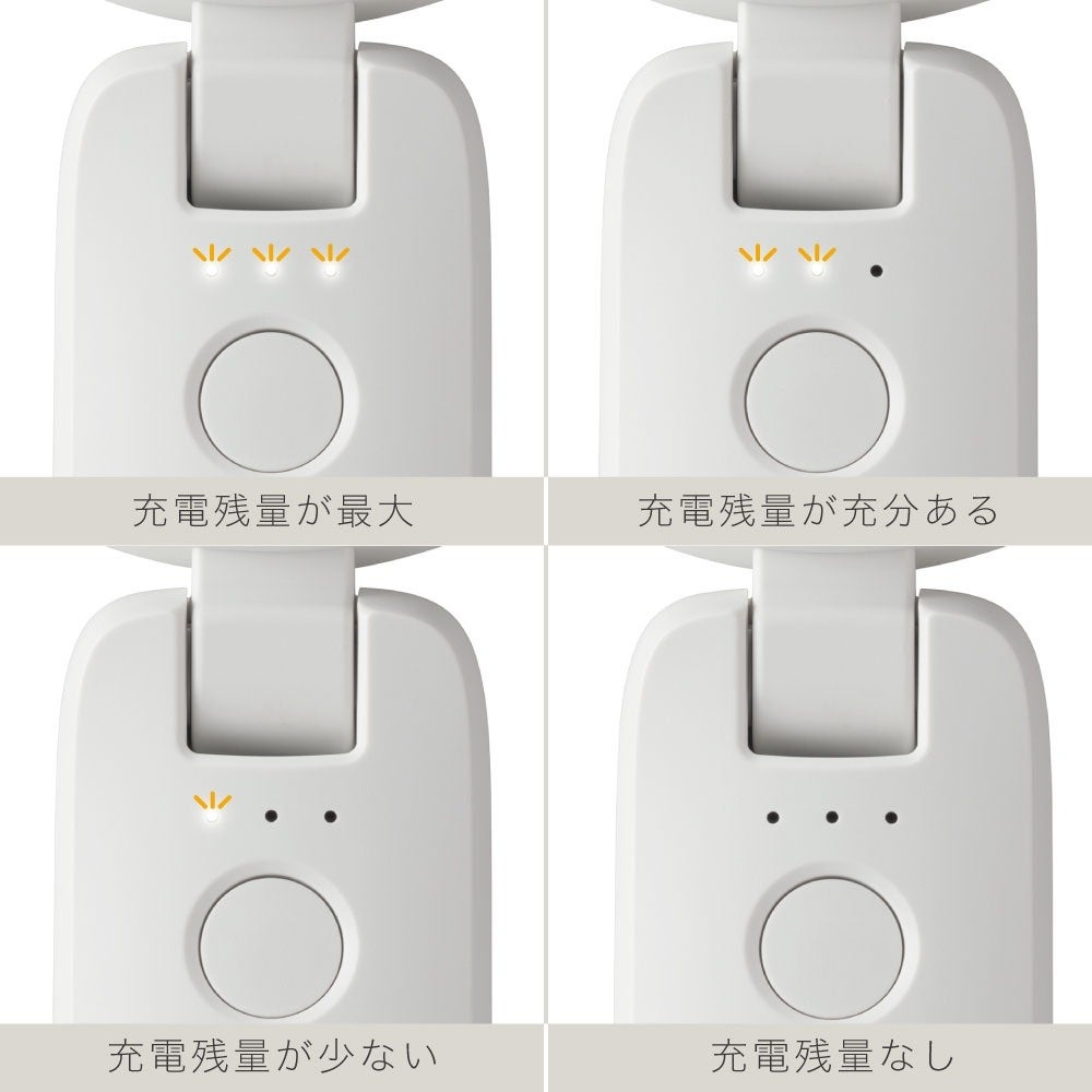 電源ON/OFFの長押し操作による誤作動防止、5段階の風量調節、充電残量表示など、基本の便利な操作性や機能性は従来モデルから引き続き搭載しています。