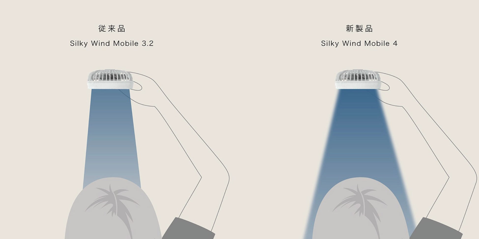 また、従来のピンポイントで直線的な風から、顔全体に広がる風質に進化し、より心地よく自然な涼しさを感じられるようになりました。