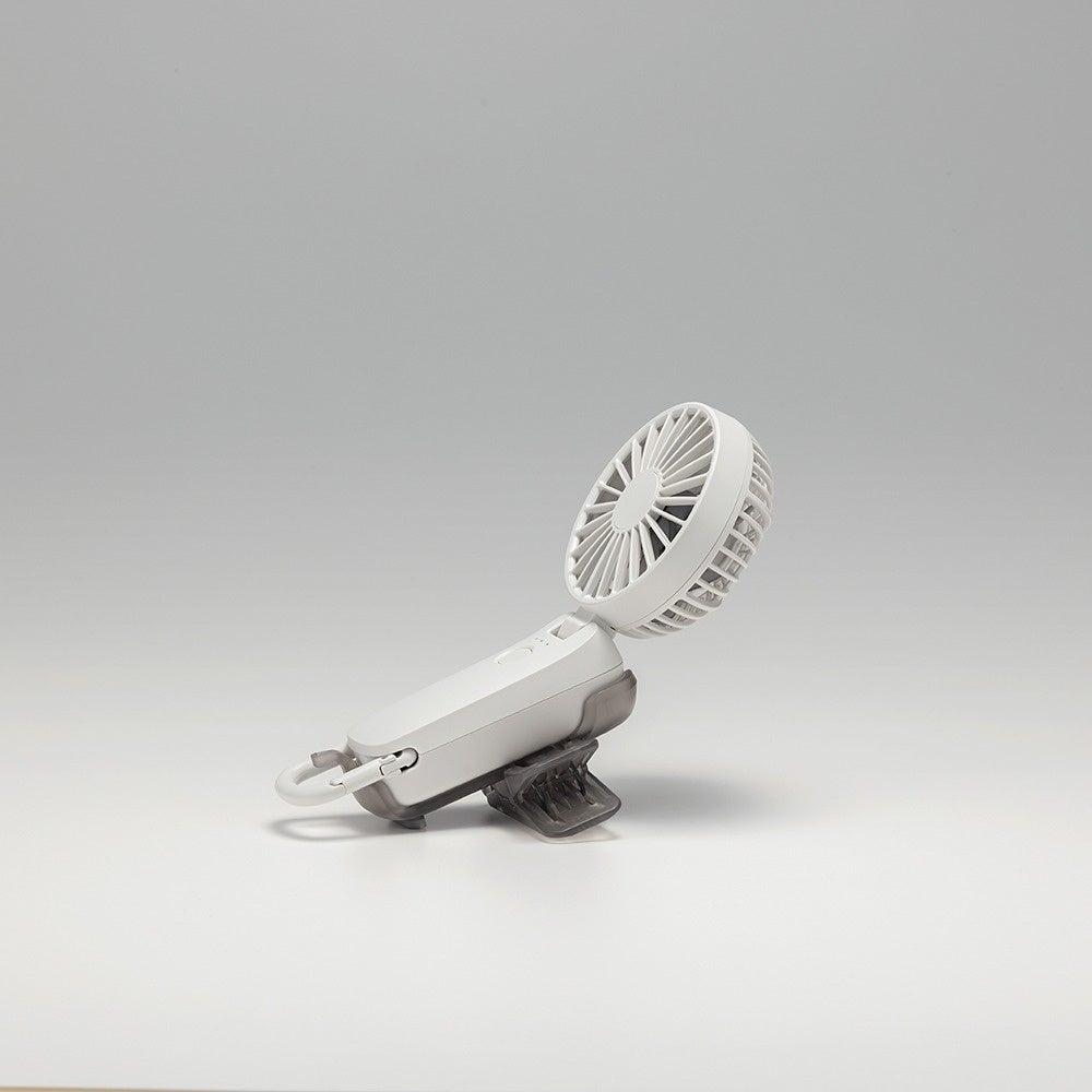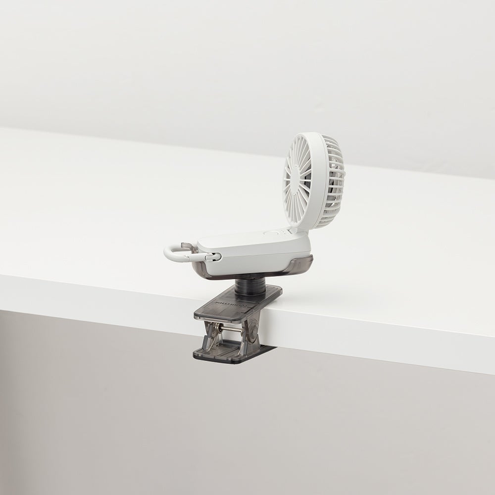 クリップ部が360度回転し、さまざまな方向にハンディファンを固定する事が可能なため、ファンの向きを狙った所に合わせる事ができます。ずれにくい構造で、ベビーカーやペットカート、テーブル、家具の縁など、さまざまな場所に取り付けて使用できます。ベビーカーやペットカート使用時に両手がふさがってしまう場面や、置き場に困る場面でも、位置を固定してハンズフリーで風に当たることができます。テーブルの上がものでいっぱいになる作業中や食事中は、テーブル縁に取り付けて、入浴後やメイク中に洗面所の棚やポールに取り付けて。屋内外を問わず、使用シーンは無限大です。