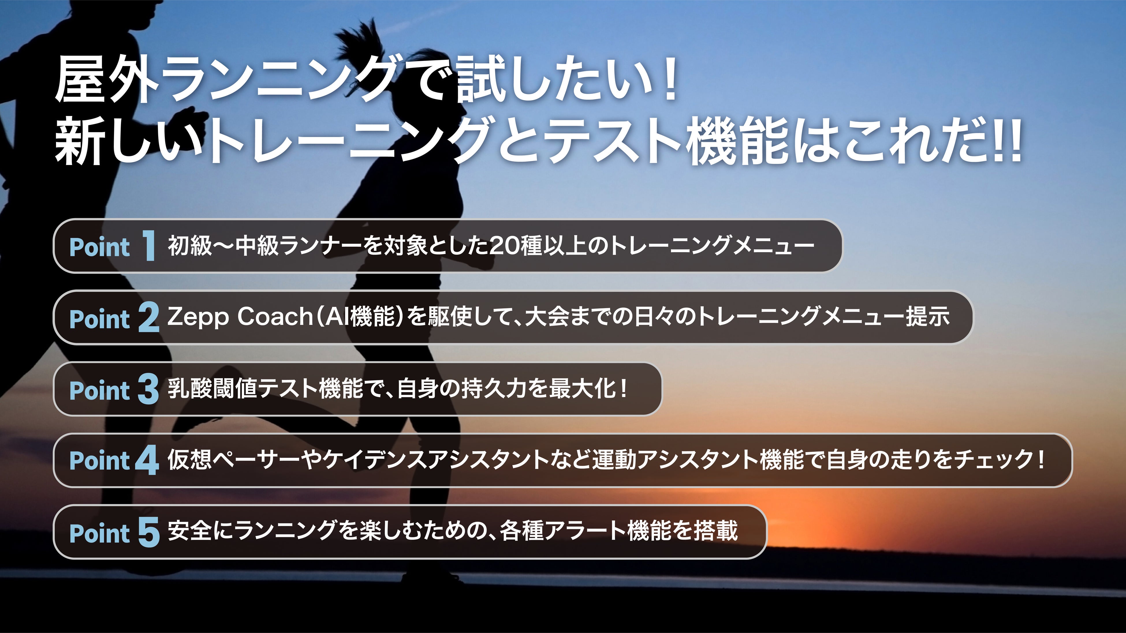 屋外ランニングで試したい新しいトレーニングとテスト機能を5つの特長としてご紹介いたします。