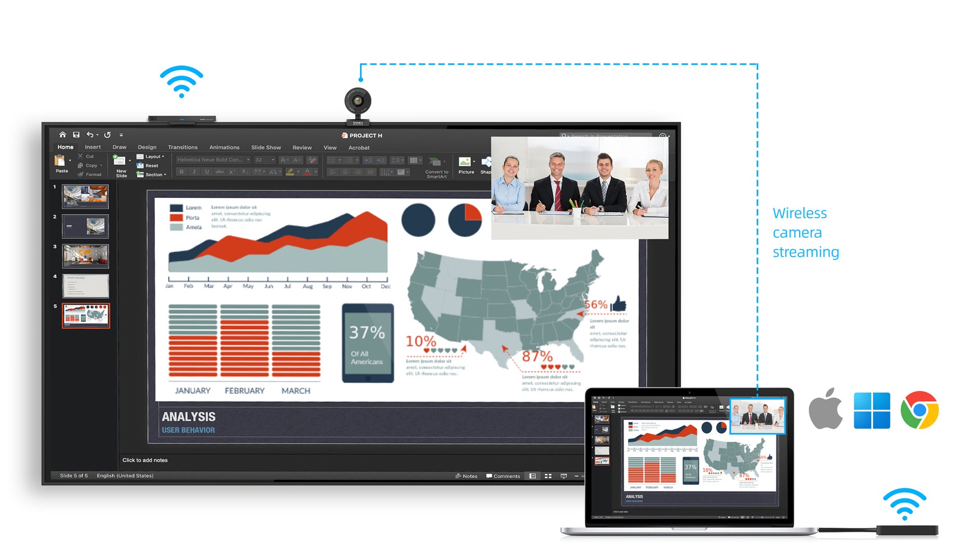 ワンクリックで接続が完了するため、企業の会議室はもちろん、教育機関での授業や、