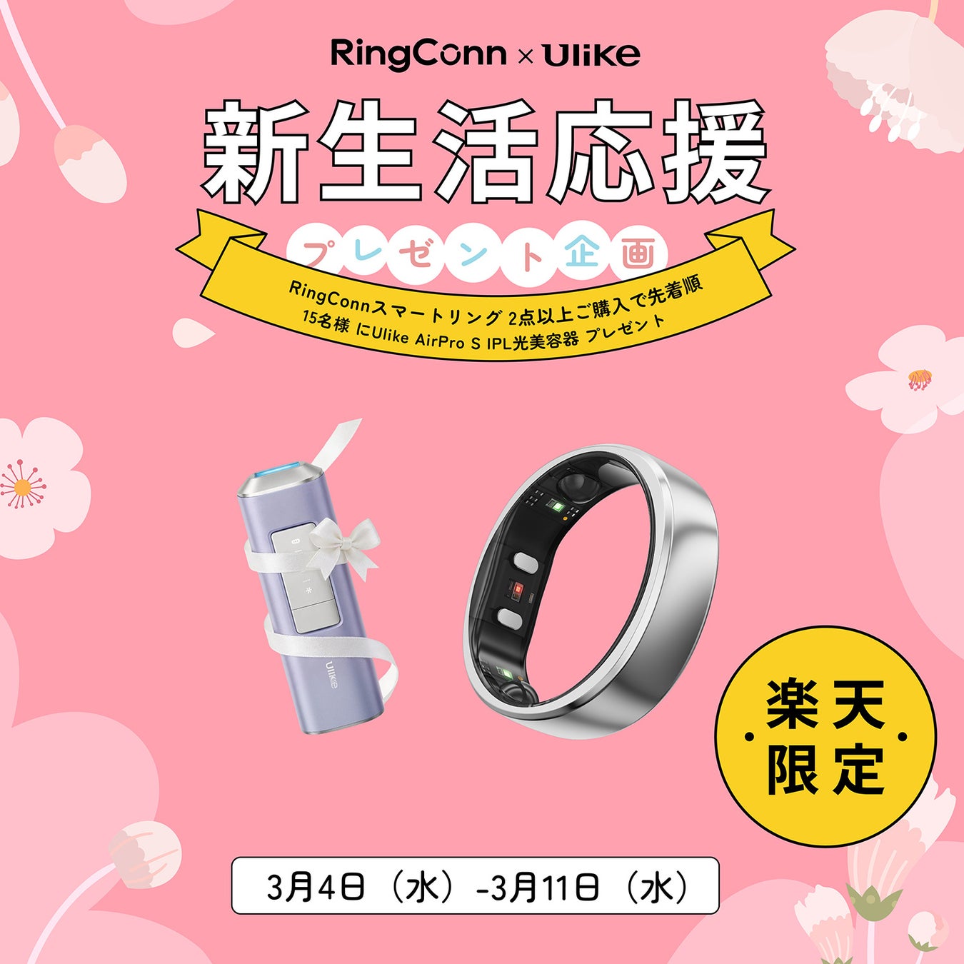 期間中、RingConnスマートリングを2点(Gen 2 & Gen 2 Airのセット、またはGen 2を2点)以上ご購入いただいた方の中から、先着15名様に人気の光美容器「Ulike AirPro S IPL光美容器」をプレゼントいたします。新生活のスタートに合わせて、自分や家族の健康管理習慣を手軽に始めたい方に最適なキャンペーンです。