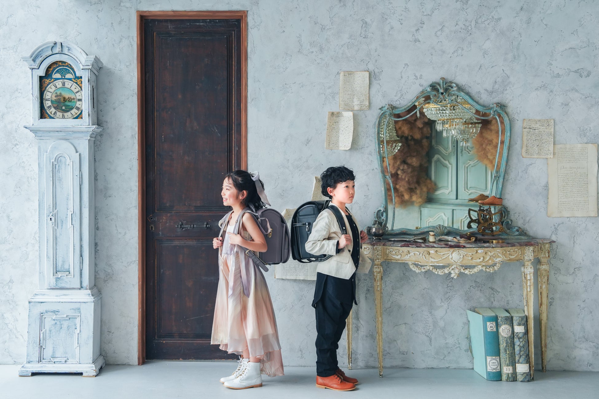 お子さまの大好きなカラーのランドセル、時間をかけて探したこだわりの詰まったランドセルで、小学生にあがる記念の写真を撮影できます。空間ごとに表情が変わるため、可愛らしさも凛とした雰囲気もどちらも叶い、お子さまの成長が実感できることでしょう。