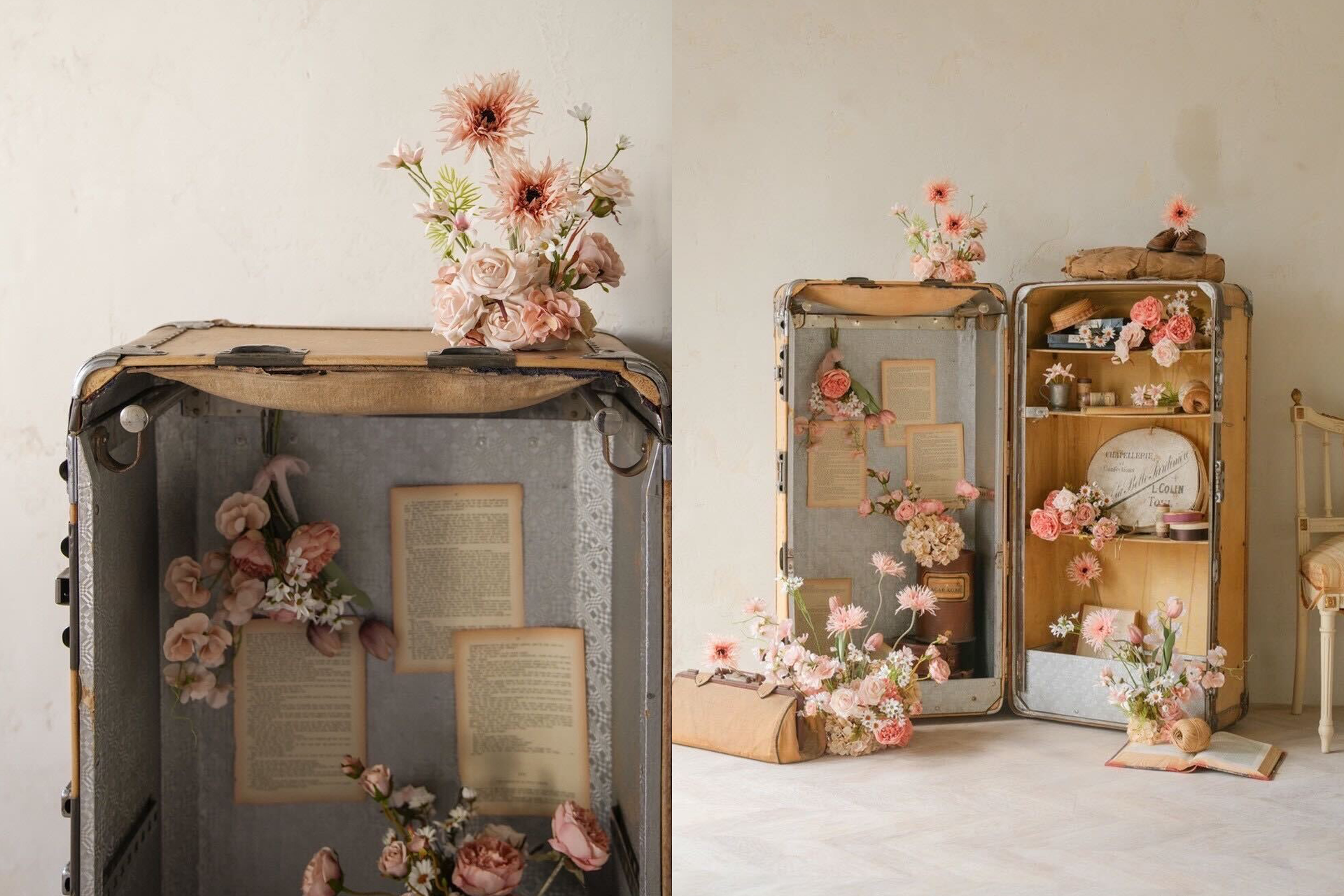 ■物語を感じる木製アンティークトランクが主役の撮影空間