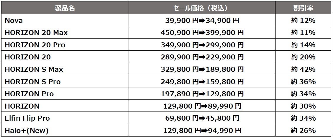 本セールでは、2026年1月に発売したエントリーユーザー向けポータブルプロジェクター「Nova」をはじめ、4Kホームプロジェクター「HORIZON 20」シリーズなど、人気機種を含む全10モデルが対象となります。