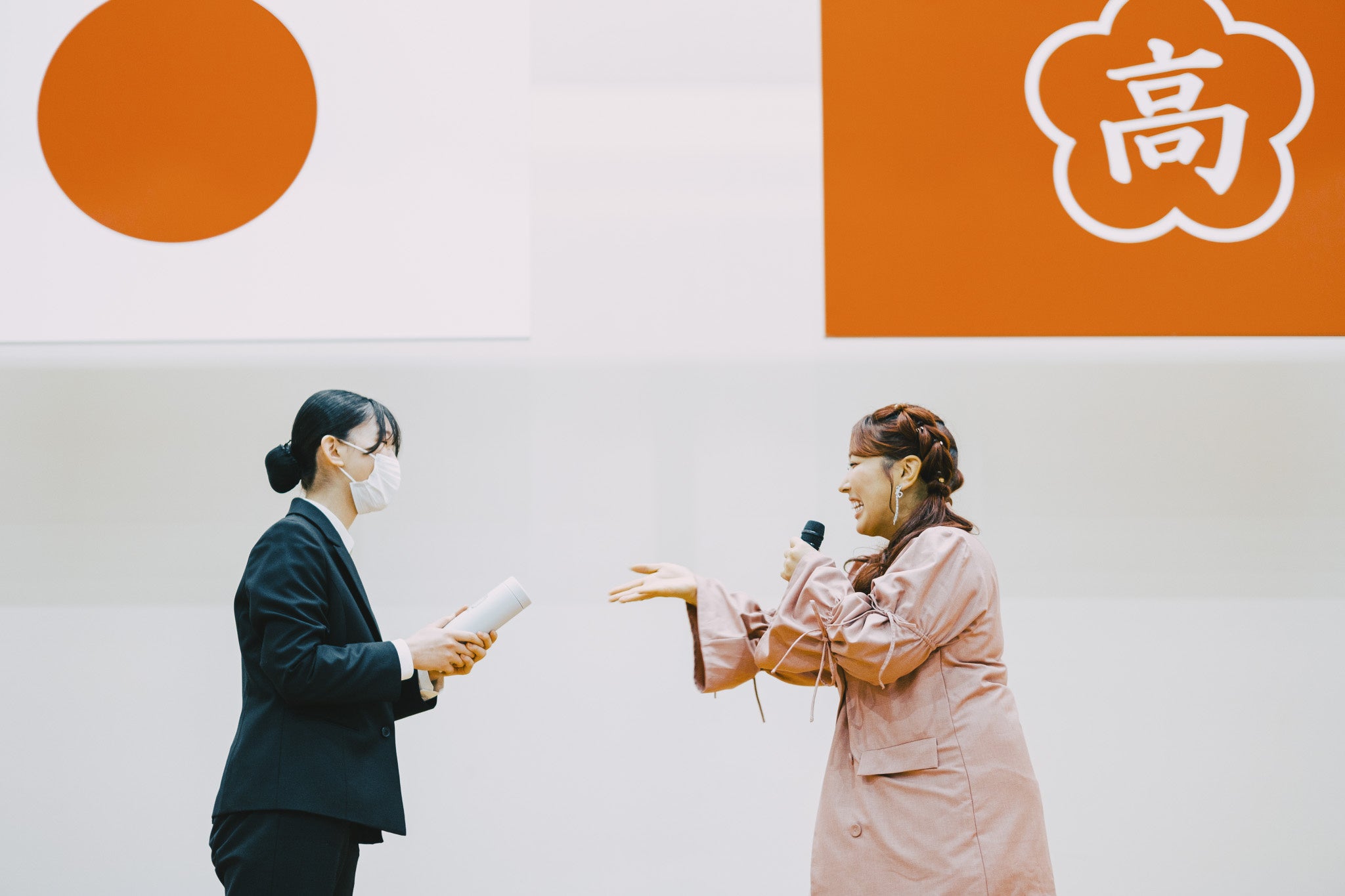 その後、同校の卒業生である3時のヒロイン・ゆめっちさんがスペシャルゲストとしてサプライズで登場。ゆめっちさんの登場が明かされた瞬間、生徒たちからは大きな歓声が起こりました。登場後、ゆめっちさんは卒業生に向けて「後輩たち本当にかわいい!よくがんばりました!約3年間玉女にいたから活きたことがたくさんありました。玉女にきてくれてありがとうございます!」とお祝いの言葉をいただきました。