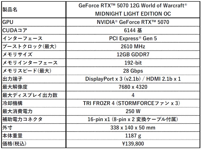 https://jp.msi.com/Graphics-Card/GeForce-RTX-5070-12G-World-of-Warcraft-MIDNIGHT-LIGHT-EDITION-OC