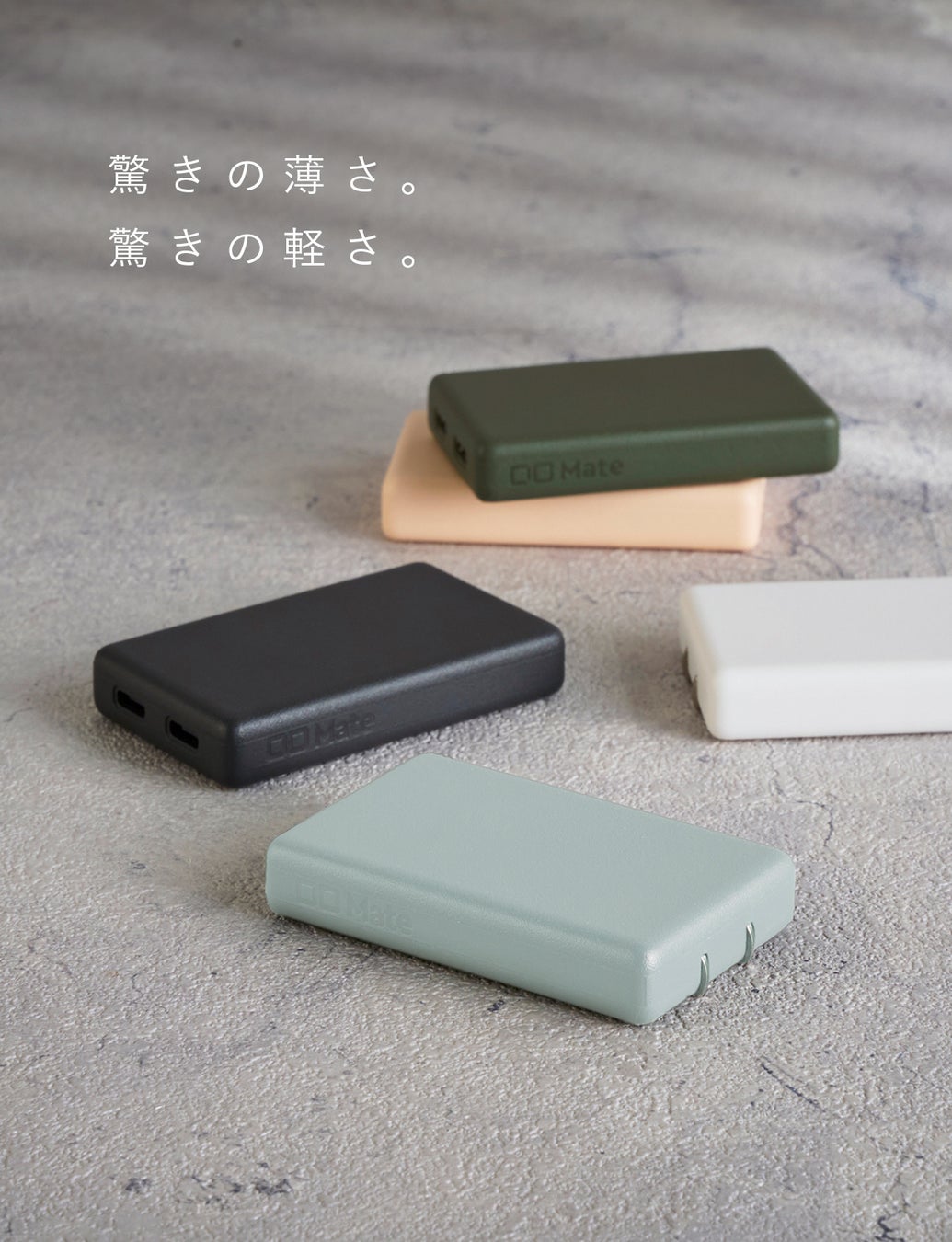 CIO Mateは、急速充電や高出力などのモバイルバッテリーとしての機能性はもちろん、アクセサリー感覚で持ち歩ける自分だけのお気に入りとして、 いつもポケットに収まるパートナーとして、時に誰かと気軽にシェアできる便利なガジェットとして、いつでもどこでも持ち歩ける『友達のような存在』をテーマとした、これまでにない新しいガジェットと暮らしの在り方を追求します。