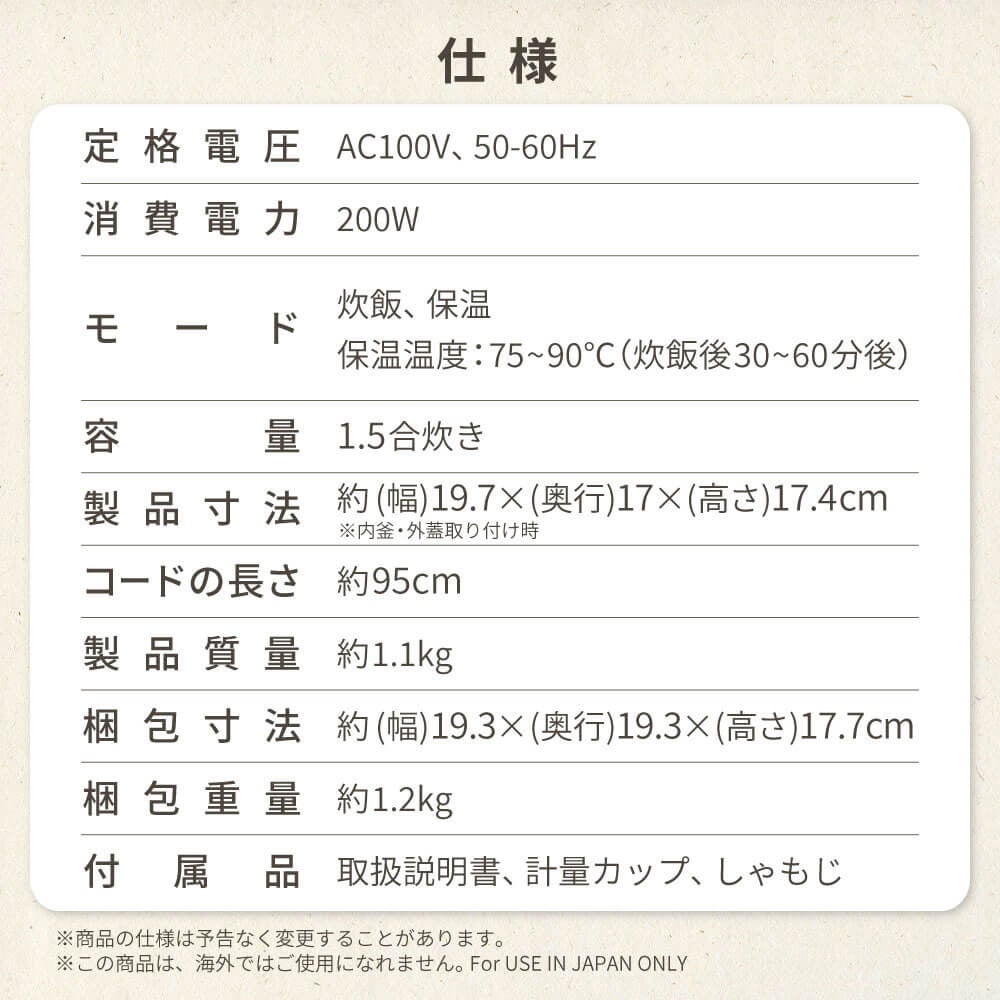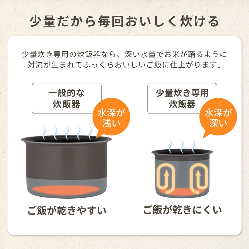 最大1.5合の少量炊きなので、ご飯が乾きにくくふっくら仕上がる