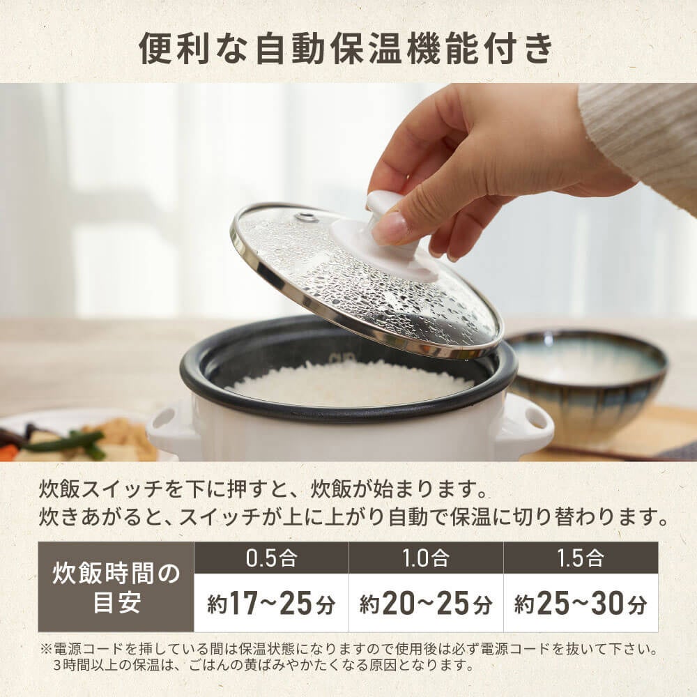 スイッチを押すだけのかんたん操作、便利な自動保温機能付き