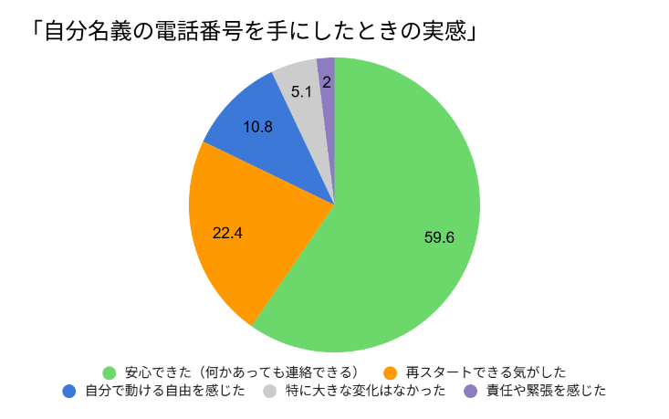 自分名義の番号を取り戻したとき、「安心できた」(59.6%)「再スタートできる気がした」(22.4%)と回答し、合計82.0%がポジティブな変化を実感しています。