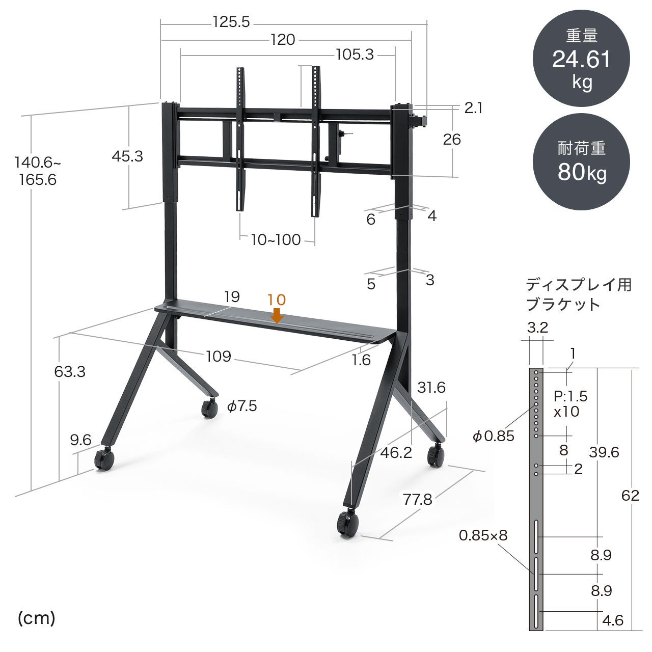 ・86インチ対応の大型ディスプレイスタンド