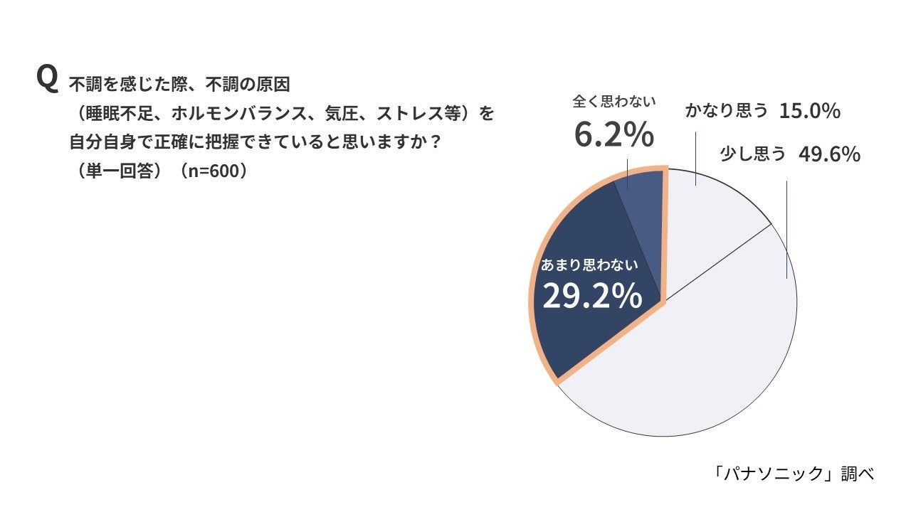 《不調の原因を把握しきれていない人は3割以上。そのうち約6割が「原因が分からないことに不安」を抱いており、見えない不調が心理的負担に》