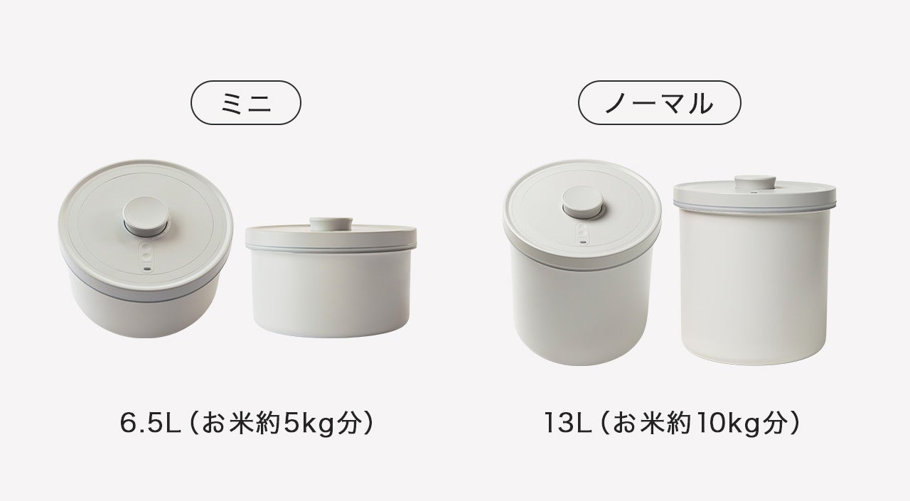実際のユーザーからも「まとめ買いしたお米を最後までおいしく食べられる」といった声が寄せられています。シリーズ累計販売台数は5万台を突破。現在はホワイト・ブラックの2カラー、ノーマル(13L)・ミニ(6.5L)の2サイズで展開しています。