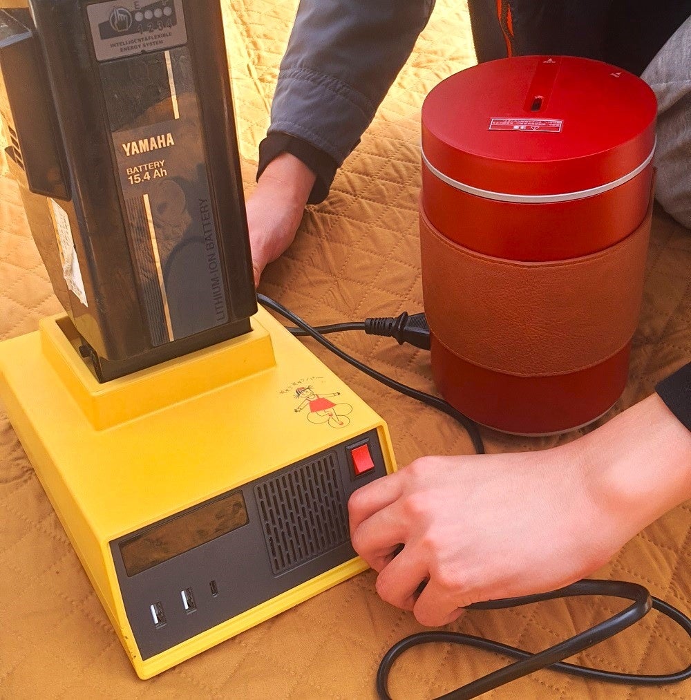 電源がない場所なら、いつも使っているアシスト自転車のバッテリーを電源に変えるインバーター『チャリパワー』がおすすめ。いつもの移動手段を“持ち運べる電源”に変えることができ、アウトドアの楽しみ方が大きく広がります。