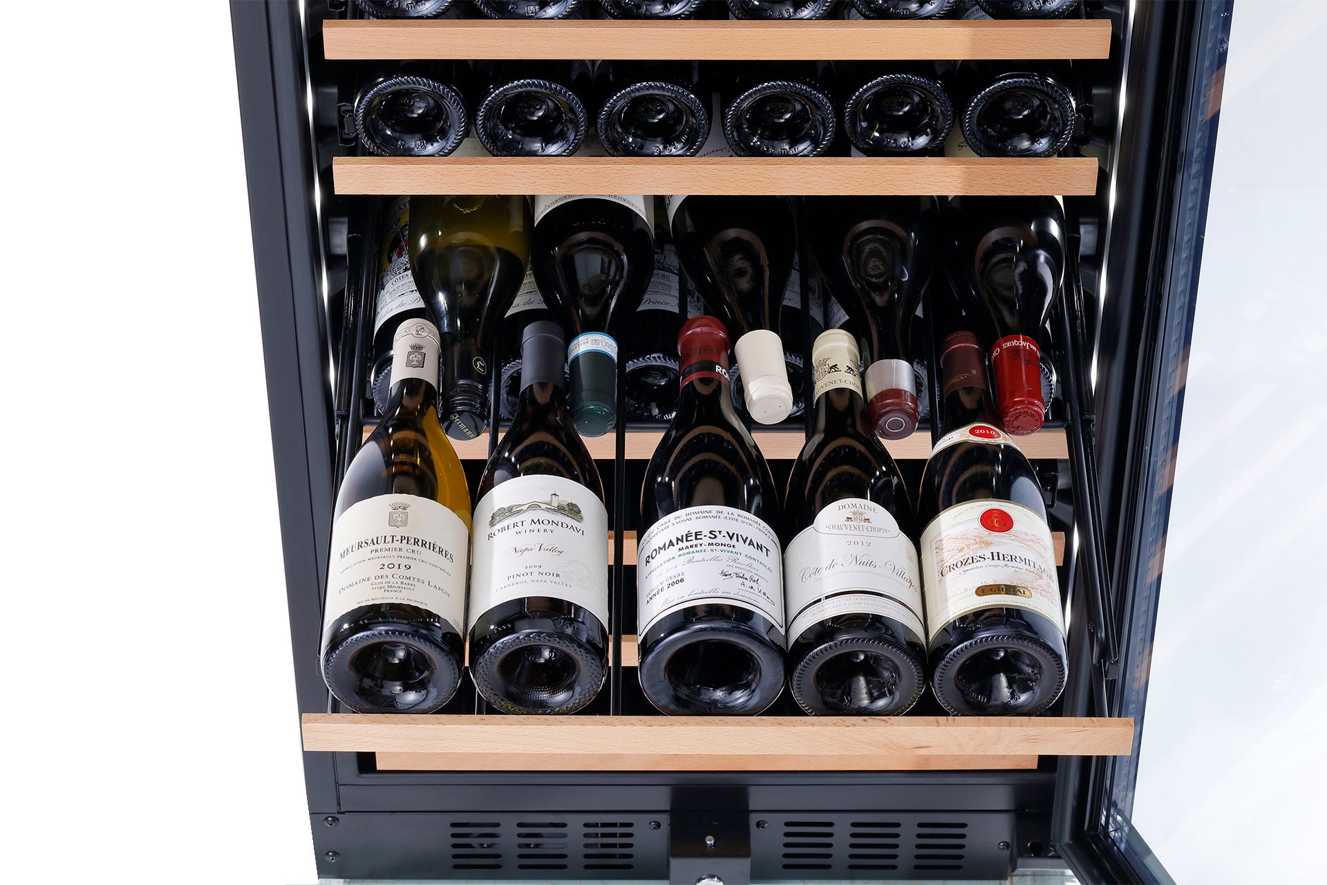 ・ボルドータイプのボトルなら最大144本、ブルゴーニュタイプのボトルなら最大132本を収納可能
