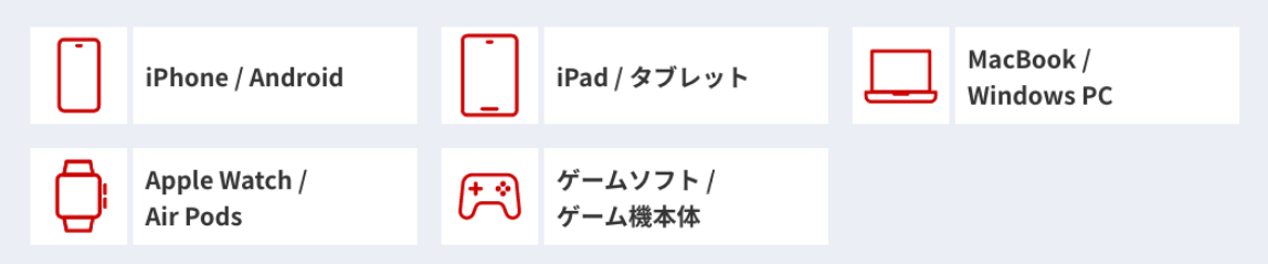 対象商材:スマホ、タブレット、Apple Watch、スマートウォッチ、AirPods