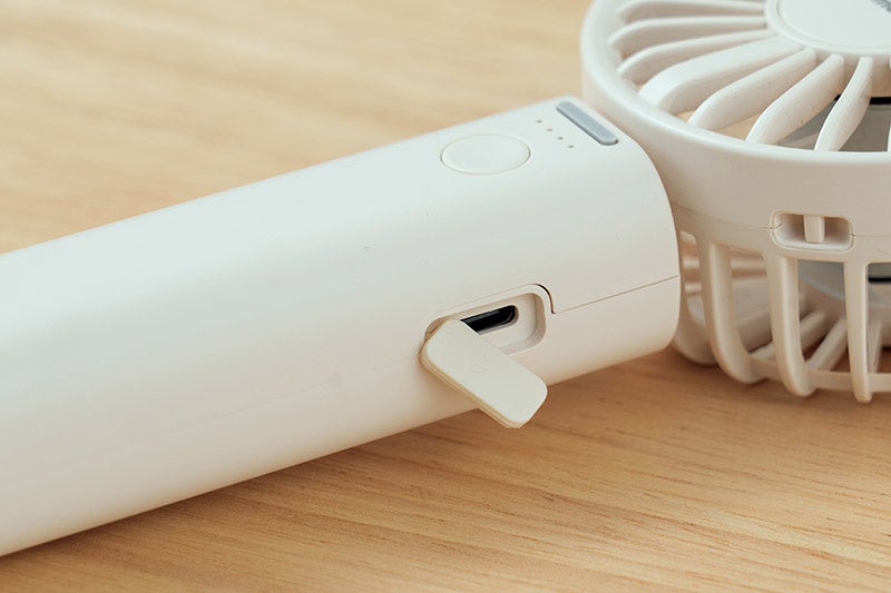 ファンの充電口にはゴミやホコリ、水滴などの侵入を防ぐカバーがあるため、屋外での使用も安心です。