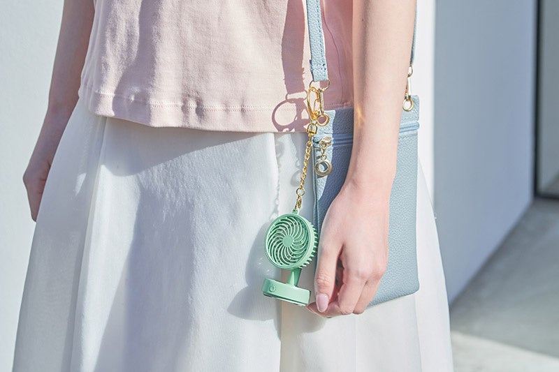 バッグチャームにもなるサイズ感ながら、風量設定が2段階ある本格仕様。カラフルなカラーリングも魅力で、ギフト用途にもぴったり。