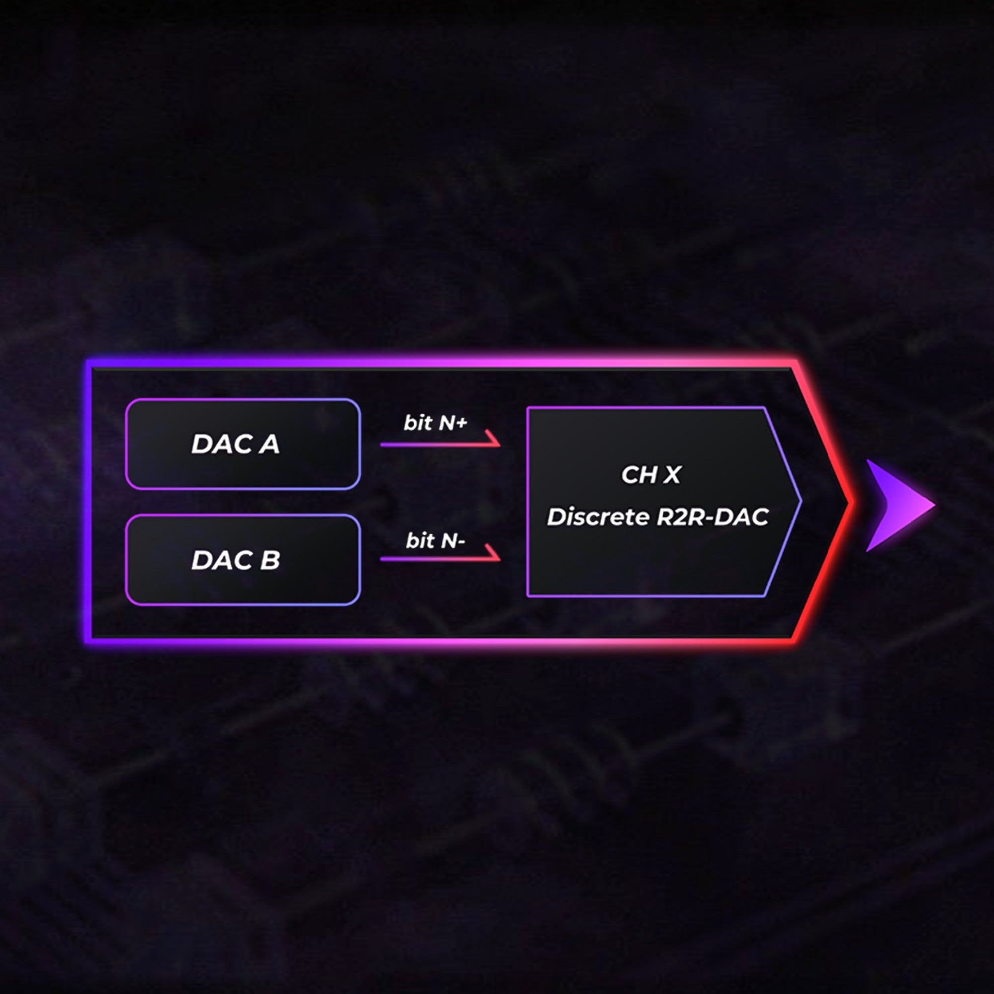 「20bit R2R + 4bitストリングDACのハイブリッドR2Rアーキテクチャ」を採用し、フルバランス8ch完全差動回路、FPGA Master3.0テクノロジーとハードウェア抵抗補償ネットワークを組み合わせています。