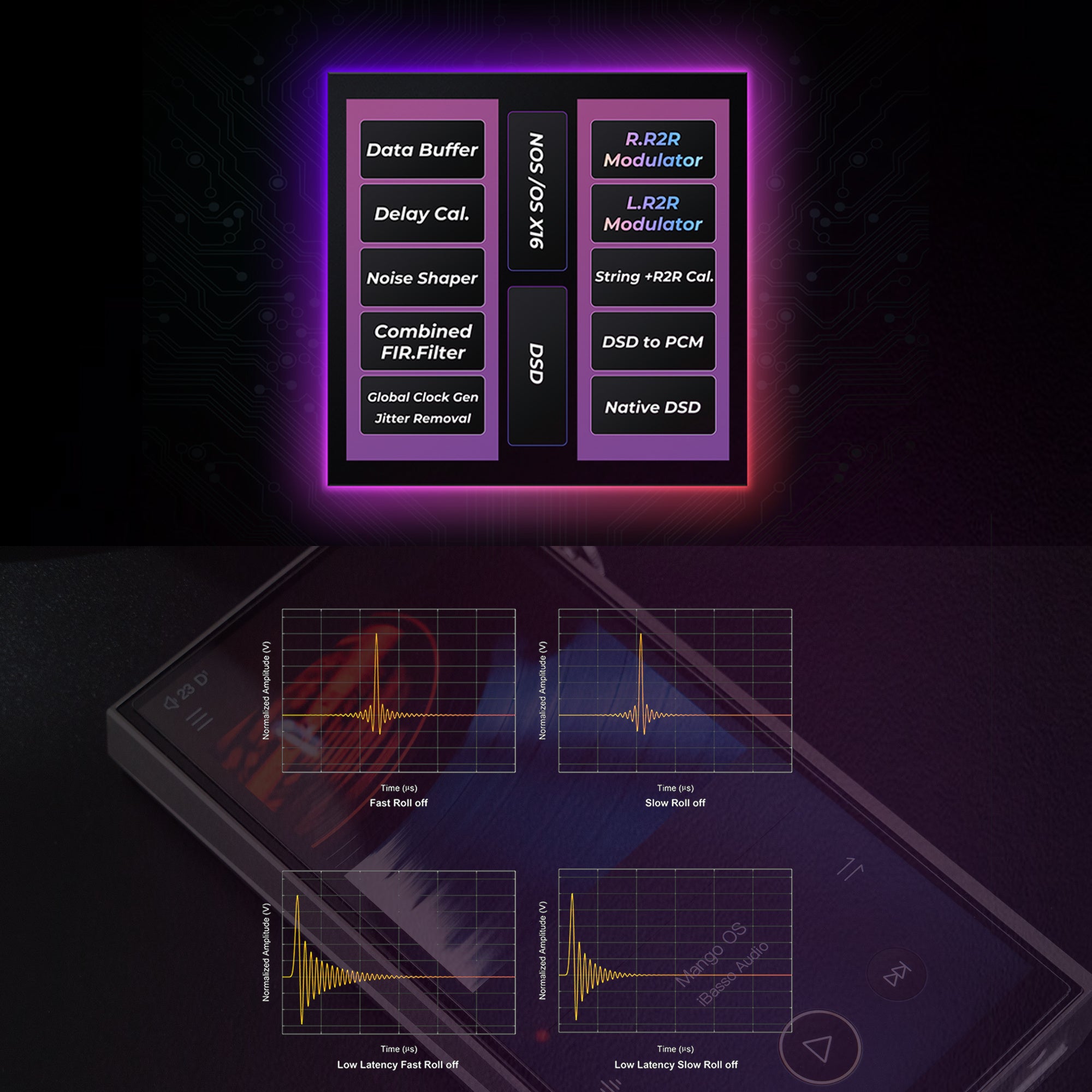 自社開発FPGAアルゴリズムと、ハードウェアスイッチング抵抗補償ネットワークがデュアルでデコードをサポートします。