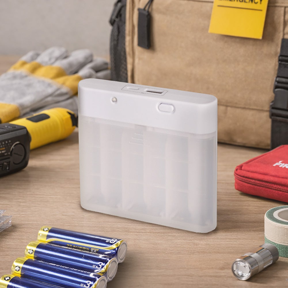 単3形のアルカリ乾電池または充電式ニッケル水素電池を6本セットするだけで使える、乾電池式のモバイルバッテリーです。電池を交換することで繰り返し使うことができます。